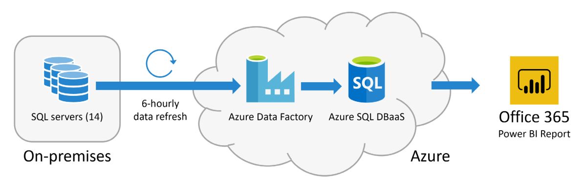 Op de Azure-tenant van ATOM werd een Microsoft Azure SQL-server (PaaS), of data ‘warehouse’, ingericht. Het host drie Azure SQL-databases die zijn ontworpen om volgens een getimed schema gegevens vast te leggen die uit on premises servers komen. Vervolgens wordt de informatie opgeslagen in een Azure SQL ‘Database as a Service’ (DBaaS).